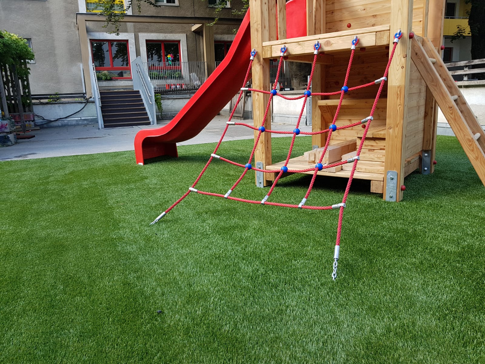 Eine städtische Qualität. Ein prächtiger, robuster und außerordentlich starker Kunstrasen, der sich hervorragend für multifunktionale Nutzung auf Spielplätzen oder in öffentlichen Bereichen anbietet.